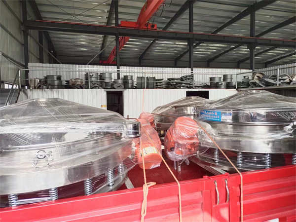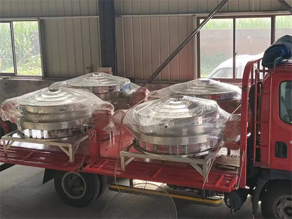 4臺1200不銹鋼直排篩發貨, 加裝超聲波系統,篩分精度高,產量大, 能耗低,全封閉,無粉塵,特制電機。